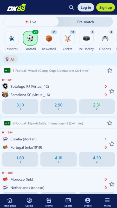 To access the DashKing88 in-play betting facility, click on the Sport Live icon found on the Main Page.