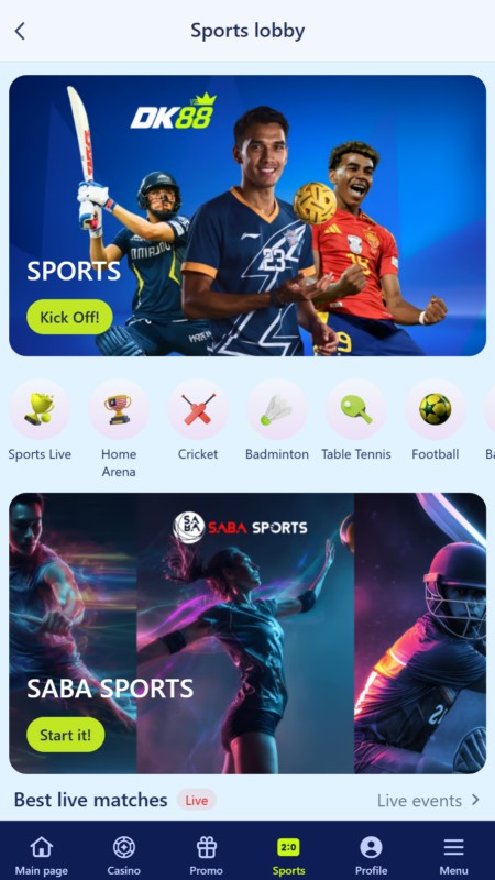 There are 25 sports and events DashKing88 users can bet on. Access to sports and markets is available directly from the bookmaker site. There is also an alternative betting platform, Saba Sports, which customers can access once they’ve created their account.